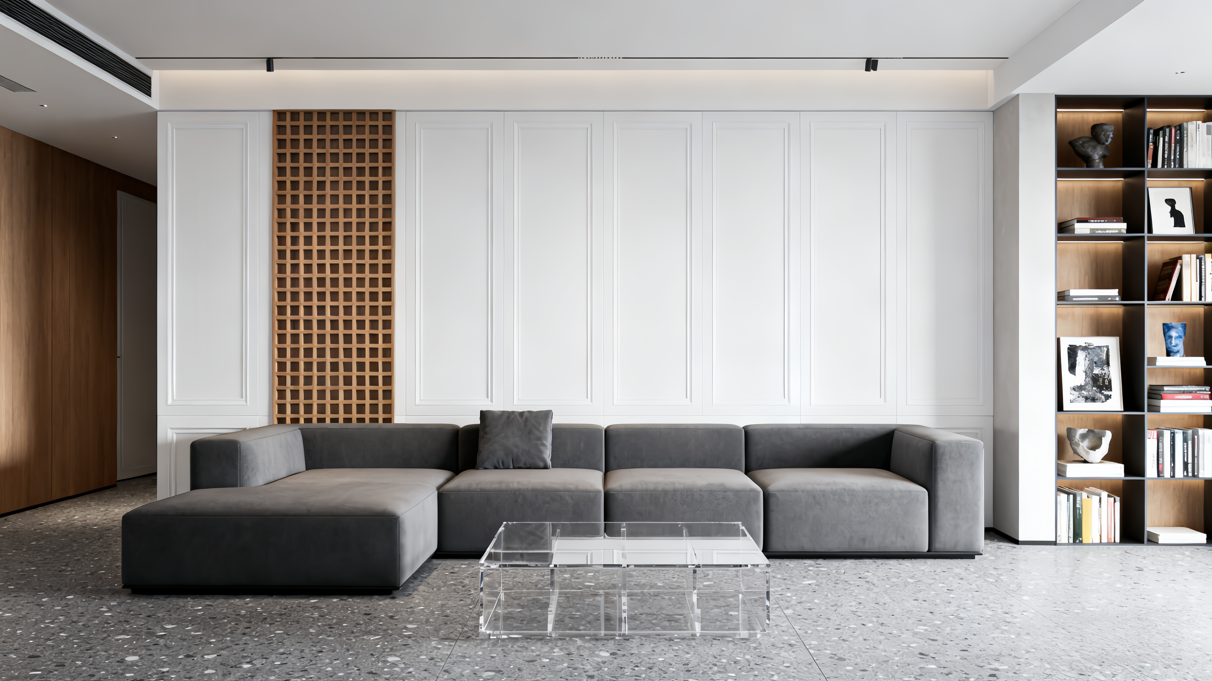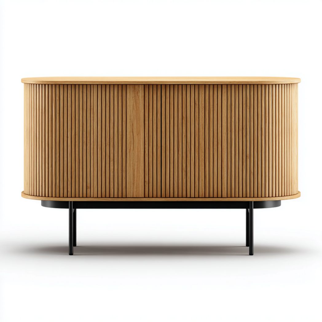 Le corps principal est une armoire noir mat et la porte de l'armoire présente de fines rayures texturées verticales, ce qui augmente la superposition et la texture de la façade. Il est équipé d'une poignée en métal doré, qui fait écho à la couleur des pieds en métal doré du bas. Il existe également des barres transversales noires entre les pieds pour le renforcement, en tenant compte à la fois de l'esthétique et de la stabilité.